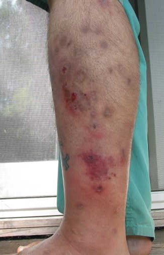 You guys are really clueless. Did you even READ the posts?! I’ve had this leg checked by HIV-specialist; dermatologist; wound care specialist. I’ve been in a hospital for three days in July and various doctor’s offices since then.